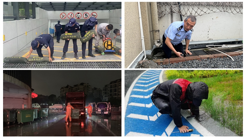 集團(tuán)旗下華都股份、浙農(nóng)實(shí)業(yè)等物業(yè)團(tuán)隊(duì)提前部署,展開防汛演練與消防檢查,提前疏浚下水管道,裝填、儲(chǔ)備防汛沙袋。連日大雨下,物業(yè)團(tuán)隊(duì)24小時(shí)值班,重點(diǎn)針對(duì)地下車庫(kù)、電車充電區(qū)等進(jìn)行巡檢,堆壘沙袋、及時(shí)清掃積水、為裸露在外的電瓶車加蓋防雨布……用貼心舉措守護(hù)業(yè)主們的溫馨家園。